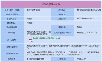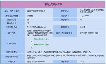 [曝光台] 海南平康医药有限公司行政处罚案件信息 日期:2021-05-06 19:31:33