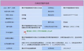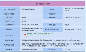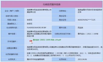[曝光台] 海南菁华药品连锁经营有限公司康益寿分店行... 日期:2021-04-19 23:18:46