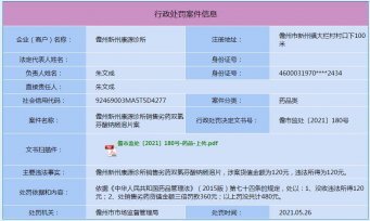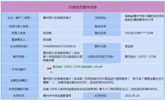 [曝光台] 海南省市场监督管理局行政处罚案件信息 日期:2021-05-21 18:20:09