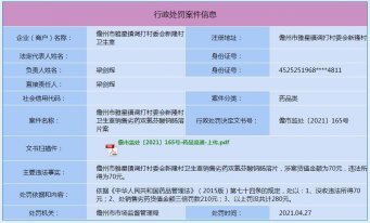 [曝光台] 儋州市雅星镇庙陀村委会卫生室行政处罚案件... 日期:2021-05-21 18:21:20