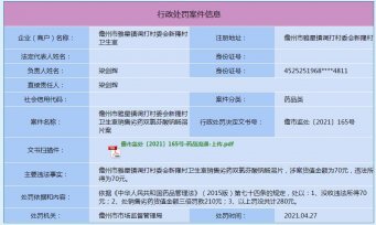[曝光台] 儋州新州康源诊所行政处罚案件信息 日期:2021-06-10 18:36:36