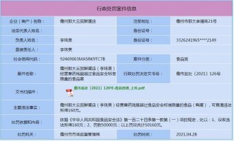 [曝光台] 儋州那大云贸鲜蛋店行政处罚案件信息 日期:2021-05-21 18:20:18