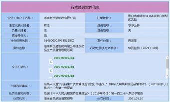 [曝光台] 海南新世通制药有限公司行政处罚案件信息 日期:2021-06-10 18:36:58