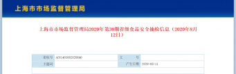 中国质量新闻网讯(庞鹤) 8月11日,上海市市场监管局官网发布的2020年第30...