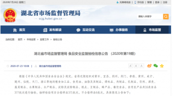 中国质量新闻网讯(庞鹤)2020年7月23日,湖北省市场监督管理局网站发布的食品...