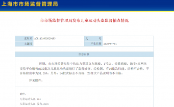 中国质量新闻网讯(广岛) 7月1日,上海市市场监督管理局网站发布儿童运动头盔抽检...