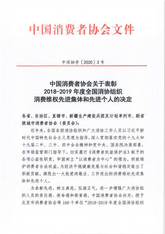[通知公告] 中国消费者协会关于表彰2018-2019...  日期:2021-04-16 12:18:06