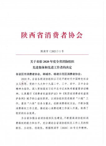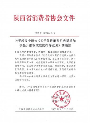 [通知公告] 陕西省消费者权益保护委员会关于印发202...  日期:2021-04-16 12:16:40