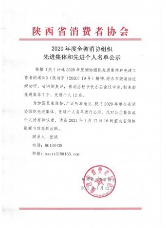 [通知公告] 2020年度全省消协组织先进集体和先进个...  日期:2021-04-16 12:17:10