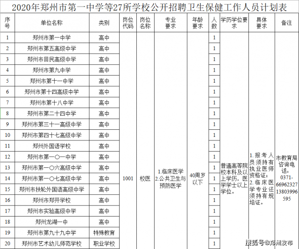 [通知公告] 郑州27所学校招卫生保健员,40岁以下都...  日期:2020-03-27 10:14:20