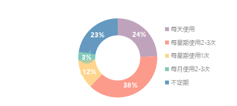 2. 消费者较常使用水彩笔/马克笔,38%的消费者每周使用2-3次。