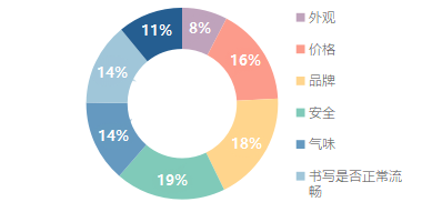 3. 消费者购买水彩笔/马克笔时多考虑品牌及安全方面,占比均为19%。