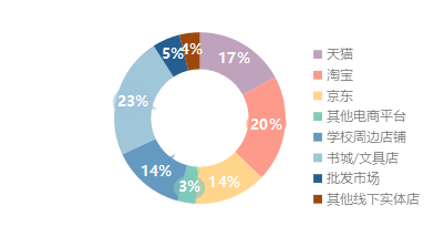 备注:1. 本次比较试验所有样品均由工作人员以普通消费者身份通过正规销售渠道购买;2. 评级结果用“★”表示,“★”越多结果越好,同星级产品排名不分先后;3. 总评“五星”为全部达到本次比较试验设定的更多、更严标准要求,总体表现卓越;“四星”为一项指标未达到本次比较试验设定的更多、更严标准要求,总体表现优秀;“不予评级”为个别指标未达到本次比较试验设定的更多、更严标准,且不符合国家强制性标准要求;4. 本次比较试验中检测出的部分不符合国外标准的相关产品,并不代表该产品不符合国内相关标准;5. 本次比较试验结果仅对所购买的产品负责,结果仅供消费者选购产品参考,不代表同品牌不同批次,不同规格产品的质量状况,不构成对任何相关产品的推荐与宣传;6. 未经江西省消费者权益保护委员会、深圳市消费者委员会、福田区消费者委员会、宝安区消费者委员会书面允许,任何单位和个人不得擅自使用本次比较试验结果作为商业宣传。      一、项目背景      水彩笔和马克笔均为常用的绘画工具,有色彩丰富鲜艳等特点,深受小朋友喜爱。童年时期的孩子有着丰富的想象力,总是喜欢天马行空写写画画。他们画的自己的眼中美好的世界,勾勒充满童真的梦想,目之所及皆需上色,包括家里的墙壁、甚至是身上的皮肤。      水彩笔、马克笔产品近三年质量检测情况均有不合格现象,主要问题集中在邻苯二甲酸酯类等化学安全性方面及笔的上帽安全等物理安全性方面,说明水彩笔、马克笔产品安全性依旧需要消费者重点关注。       2020年5月,江西省消保委、深圳市消委会开展了儿童文具(水彩笔、马克笔)消费情况调查,收集了288份的有效问卷。依据前期发布于“江西放心消费315”、“深圳市消费者委员会”和“品质研究院”的网上问卷调查结果显示:      1.网购是消费者购买水彩笔/马克笔的第一途径,占比高达54%。其次是在书城/文具店购买,占比23%。