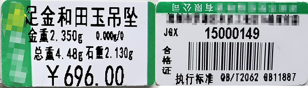 ① 无中文。有一些商家有意无意地仅在标签上体现英文缩写,误导消费者对于产品信息的判断,如:“Au750”、“G999”、“S925”等。
