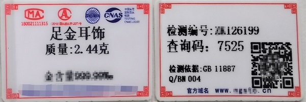 (1)标签的标注内容至少包括饰品名称、重量、产品标准编号、生产/销售企业的名称。饰品名称:由材质名称和品种名称组成,应表明产品的真实属性。